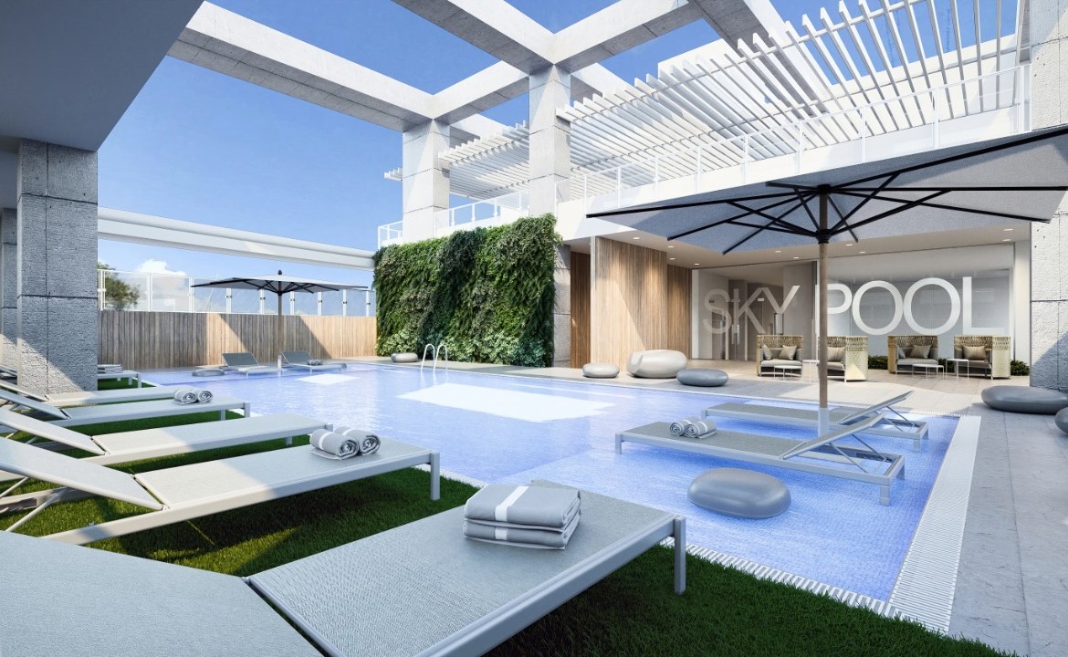 Apartamentos disponibles en un nuevo proyecto en construcción, tipo condo hotel, con aproximadamente 150 metros de altura, siendo el 3er rascacielo más alto de República Dominicana y el Caribe Antillano con 41 niveles y 3,600 m2 de áreas sociales (pisos 6, 40 y 41).